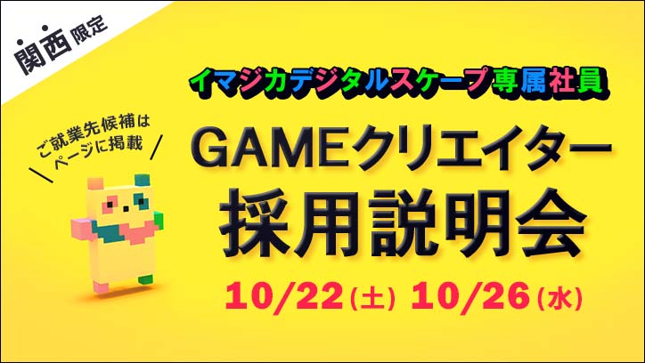 就業先は関西のゲーム会社!第5回イマジカデジタルスケープ専属クリエイター社員採用説明会開催!!
