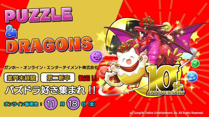 ガンホー・オンライン・エンターテイメント株式会社 オンライン会社説明会 11月18日(金)
