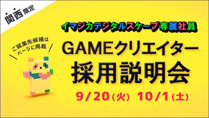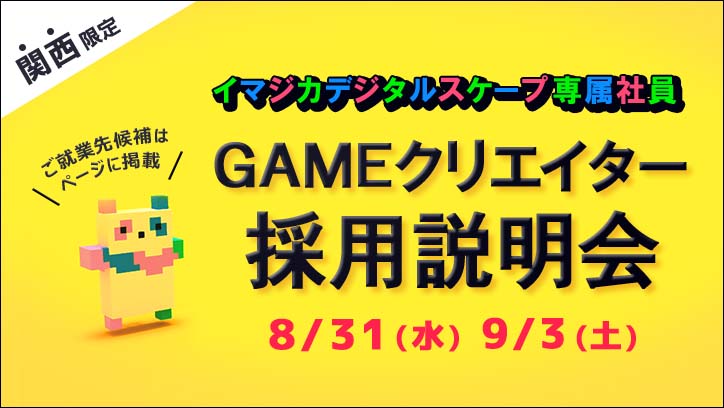 就業先は関西のゲーム会社! 第2回イマジカデジタルスケープ専属クリエイター社員採用説明会開催!!