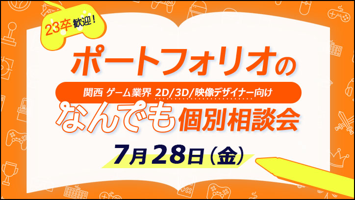 【23卒歓迎!】関西 ゲーム業界 2D/3D/映像デザイナー向け ポートフォリオのなんでも個別相談会