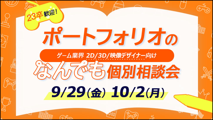 【23卒歓迎!】ゲーム業界 2D/3D/映像デザイナー向け ポートフォリオのなんでも個別相談会 9月29日(金)10月2日(月)