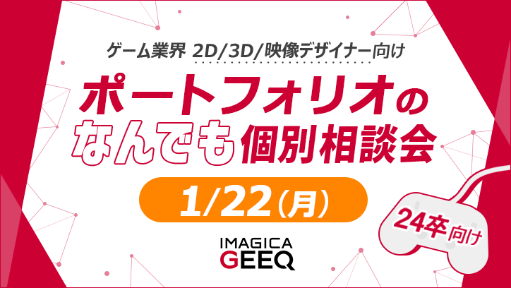 【24卒向け!】ゲーム業界 2D/3D/映像デザイナー向け ポートフォリオのなんでも個別相談会 1月22日(月)