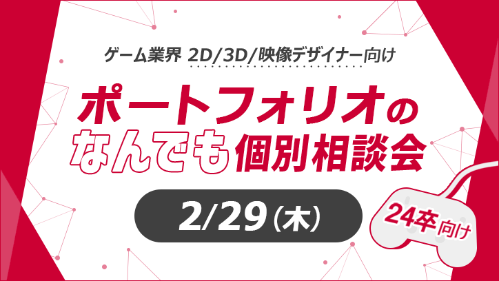 【24卒向け!】ゲーム業界 2D/3D/映像デザイナー向け ポートフォリオのなんでも個別相談会 2月29日(木)