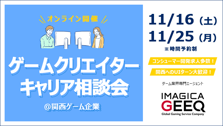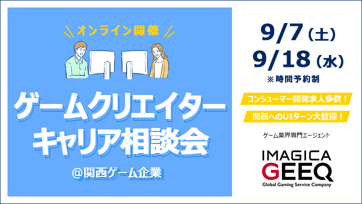 【オンライン開催】ゲームクリエイターキャリア相談会@関西ゲーム企業